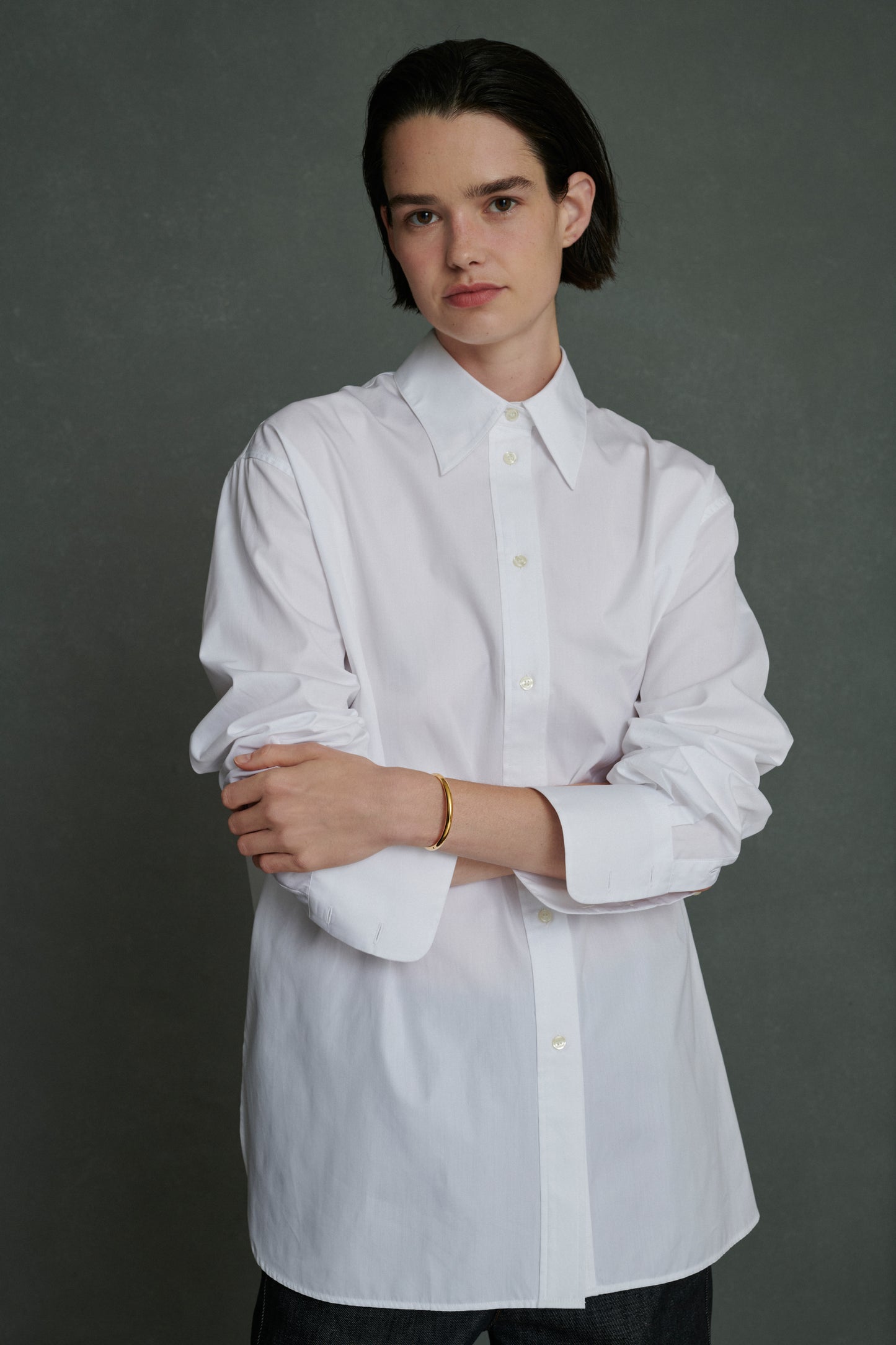 JOHNNY es un brazalete grueso chapado en vermeil. Tiene un cierre de trinquete que facilita su colocación en la muñeca.