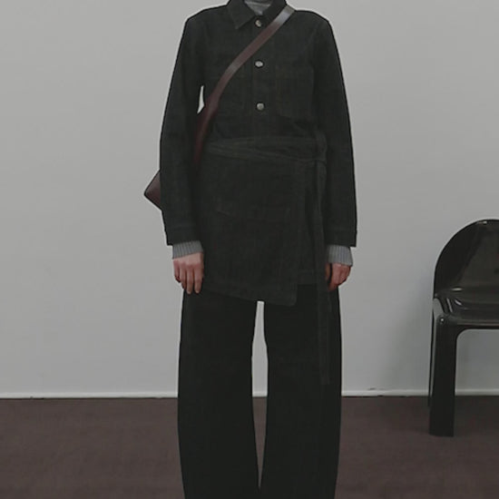 Minifalda tipo delantal en denim bruto denim negro crudo