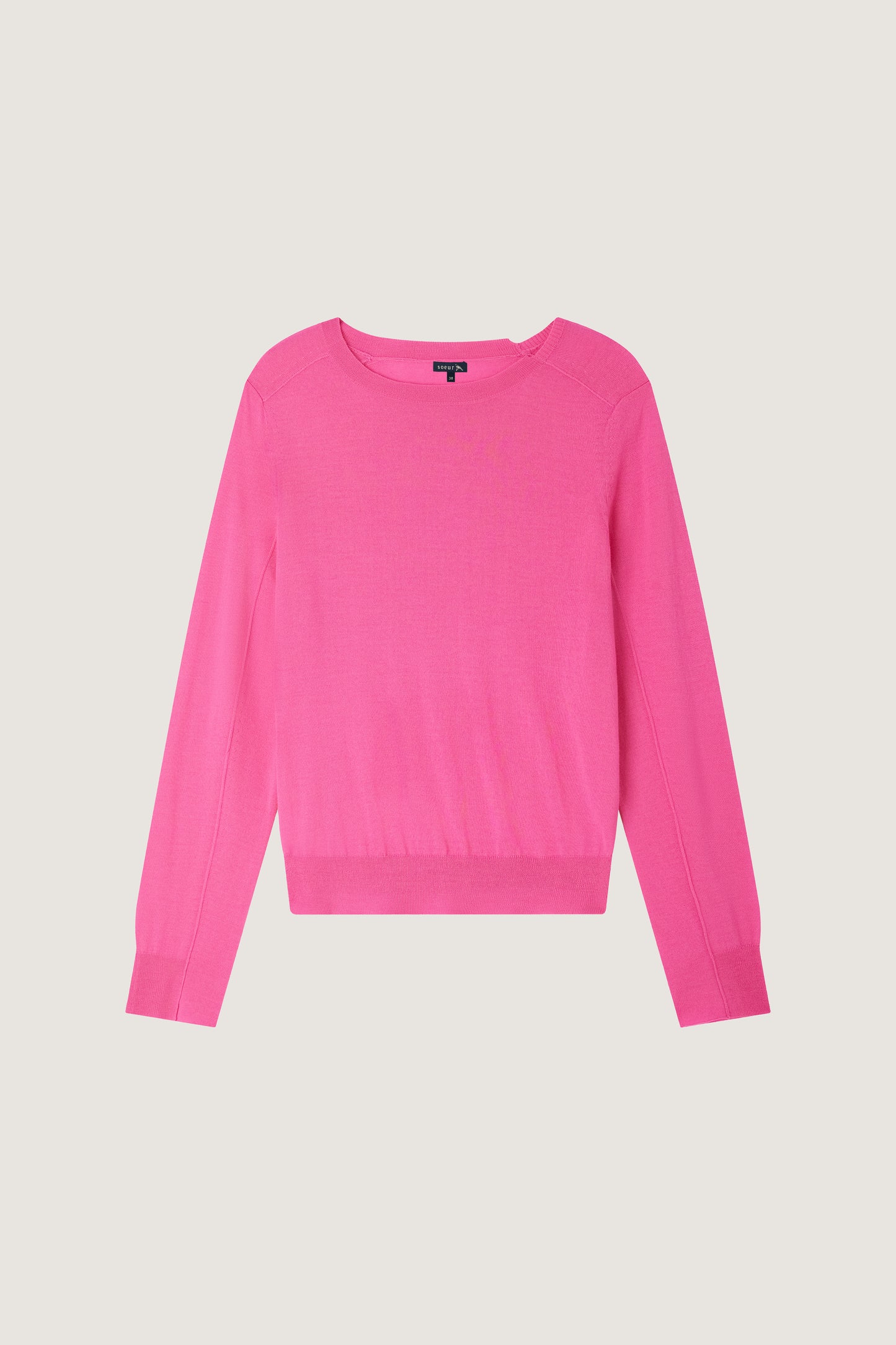 jersey australie Jersey rosa de manga larga de lana merina extrafina con ribetes asimétricos