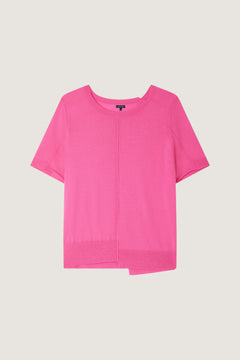 Jersey rosa de manga larga de lana merina extrafina con ribetes asimétricos